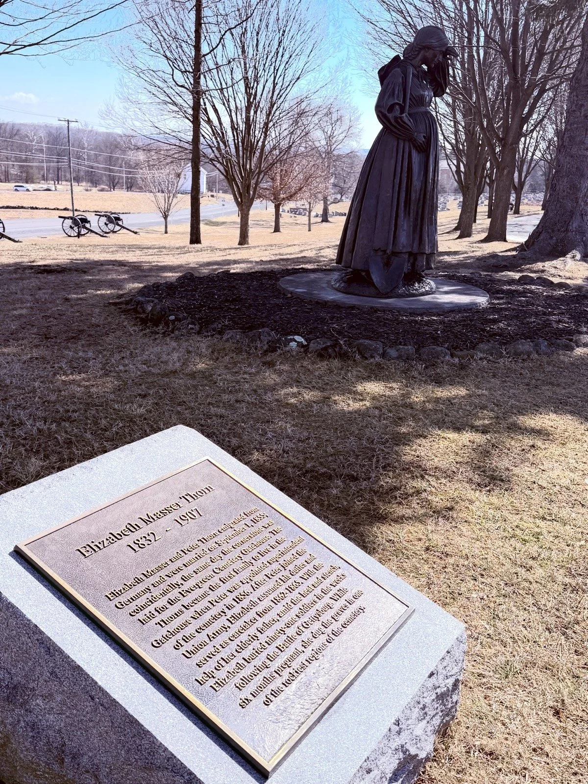 Of course, you could always just get in your car and drive all around the battlefield and read the monuments, but there’s so much to read and look at, it’s nice to have a professional giving you the cheat notes. We did drive around to places such as the Devil’s Den, Little Roundtop, the Gettysburg National Cemetery, and Evergreen Cemetery to have more time in those areas. Speaking of Evergreen Cemetery, this is where you can find Jennie Wade’s and Elizabeth Masser Thorn’s memorials.